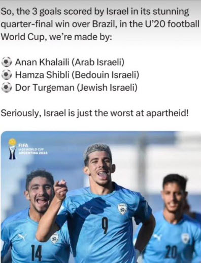 Israel is a tiny country but it beat one of the greatest soccer countries Brazil.
