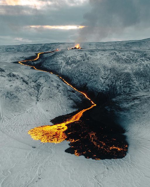 Plates move either toward other plates or apart from them. If they move apart molten rock or magma fills in the widening crack and sometimes emerges as volcanoes. This is happening in the Atlantic ocean and created the mid-Atlantic ridge and the island of Iceland. That is why Iceland is known as the island of fire and ice. Here is a picture below of Iceland (captured by @bsteinbekk).
