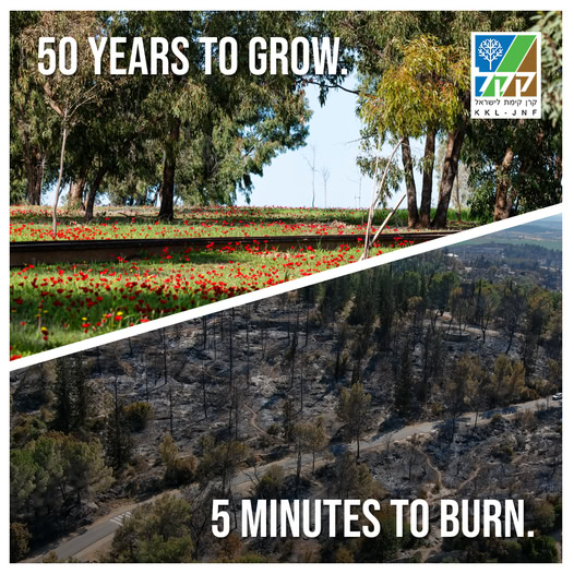 The Jewish National Fund is trying to raise money to replant the burnt forests. Here is their ad.