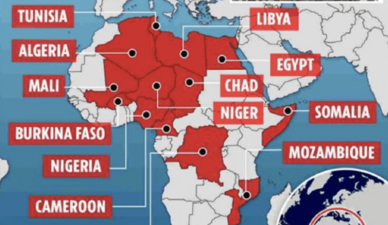 ISIS and Al Qaeda linked groups have taken over the Sahel a large area between the Sahara desert and the south of Africa that extends all the way across the continent.
