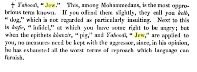 Muslims, however have a long history of persecuting and massacring Jews long before the modern state of Israel declared independence. There is a great book about this called The Legacy of Antisemitism by Andrew Bostom. Another excellent book about the persecution of Jews by Muslims was written by Bat Yeor and is called “The Dhimmi: Jews and Christians Under Islam”. Non-Muslims living under Muslim rule were called Dhimmis. Dhimmis were protected as long as they didn't violate their Dhimmitude. If they gained to much influence in Muslim controlled lands Muslim rage would built up and Jews would be massacred. There was a lot of Muslim hatred of Jews long before the birth of the modern state of Israel in 1948. James Augustus St. John, an Englishman who traveled through Egypt in the early 1800s wrote a book called "From Egypt and Mohammed Ali Or Travels in the Valley of the Nile" (1834). In the book he explained that the term "Yahoodi" (Jew) was the worst insult a Muslim could muster when attacking an opponent. He wrote: