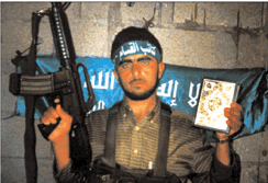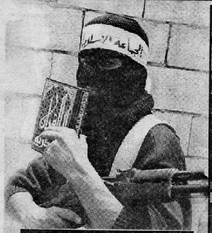 The 4 Muslims in the picture are holding a weapon in one hand and a Koran in the other. What are they telling us?